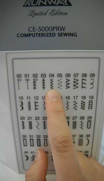 Fijar la costura en una puntada de zig-zag. Tienes que ajustar para que se vea sólido. Practique un par de veces en lana de desecho para que pueda obtener una buena sensación para él.
