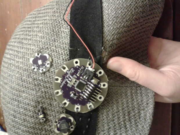 Cada conexión cosido debe comienzan y terminan con la costura el hilo conductor a través del pin varias veces para asegurar una buena conexión.