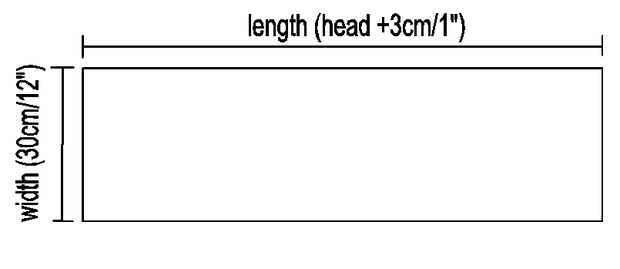 Mina de Heres: 60cm (24") alrededor de la cabeza, que, con los 3cm (1") en el, me da una longitud de 63cm o 25". Esta es la primera de sus medidas...