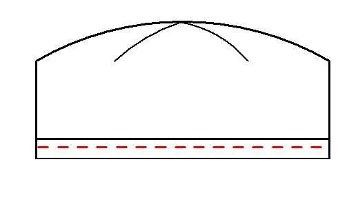 Necesita coser a lo largo de la línea doblada que apenas ha realizado, alrededor de 5mm (aproximadamente 1/4") de la parte superior del dobladillo doblado (la línea roja en el diagrama)