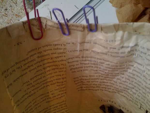 Luego pegar el borde a la corona.  Se quiere organizar el borde de la corona con las lengüetas dentro del sombrero y teniendo en cuenta que el sombrero es al revés.  Una vez más, necesita tomar unas cuantas sesiones para ello y paperclipping todo en su lugar para cosas no resbalón mientras el pegamento es de secado.