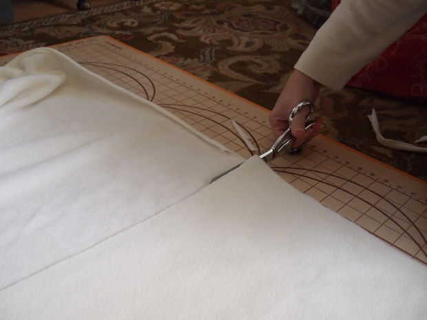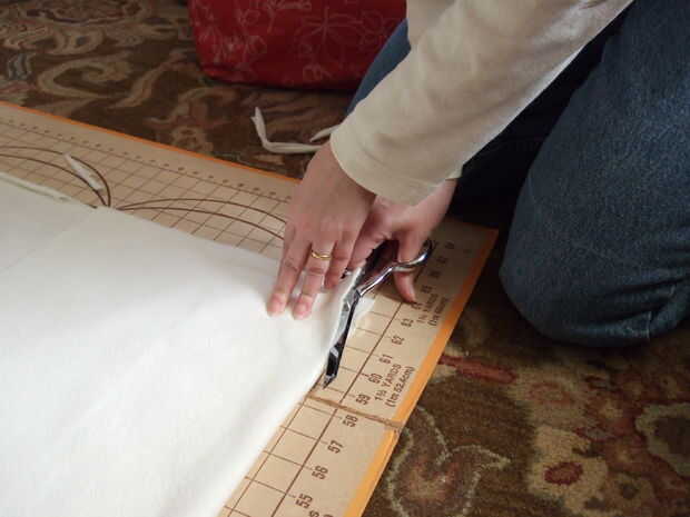 Deslice su tijera en el pliegue y corte toda la longitud del doblez. Luego, a raíz de la pieza superior como plantilla, cortar el fondo por lo que es idéntico a la parte superior.