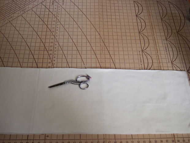 3 desde su borde recién cortado de la tela, doblar a la tela sobre sí mismo por la cantidad de su medida B ___. La tela debe poner final de orillo al orillo extremo. Estará cortando la longitud completa de la fabrlc.