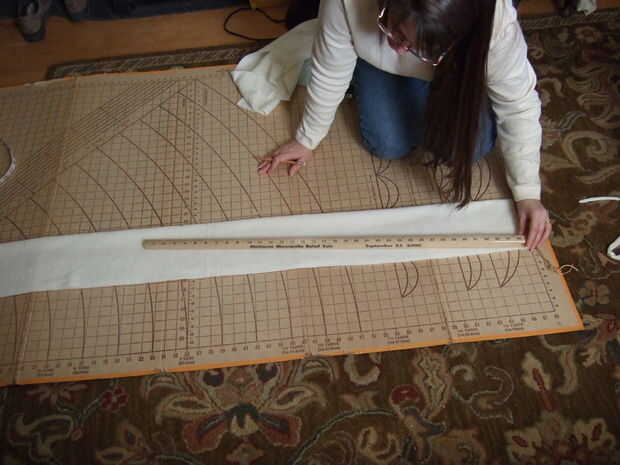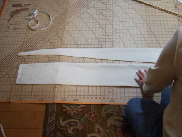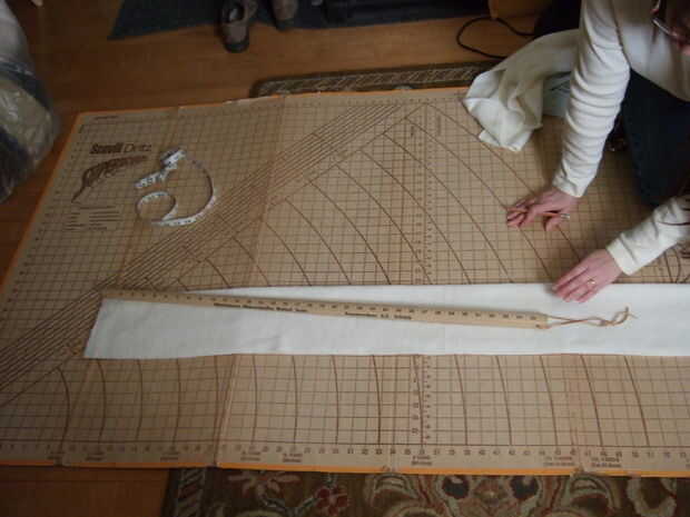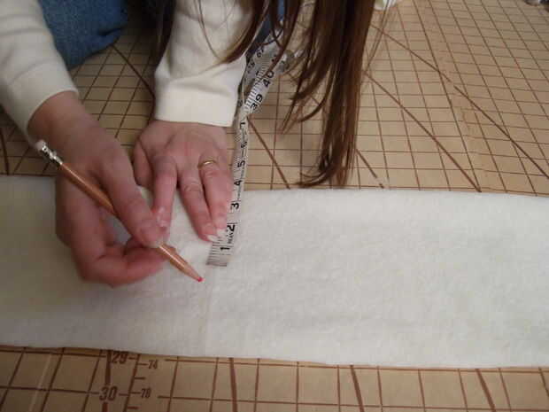 Usando el palillo de la yarda, alinee el ángulo extremo a extremo. Debe ser una línea recta. Marcar y cortar.