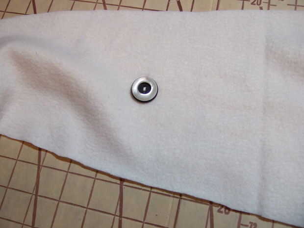 Marque la colocación de un botón a un 1" más o menos más allá del dispositivo en la dirección de la cinta del sombrero. Ver pix.