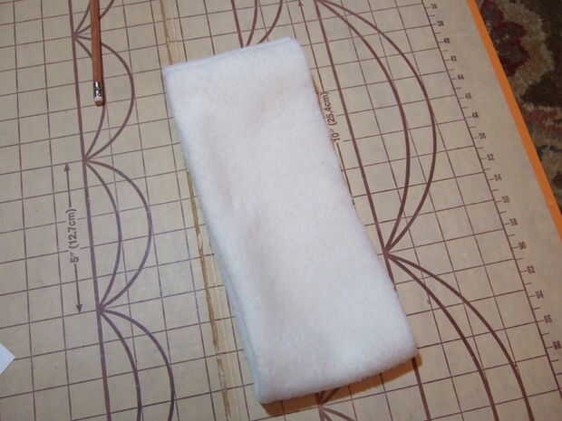 Doble banda de sombrero en mitad a lo largo (lado derecho junto) y coser los extremos cortos juntos.