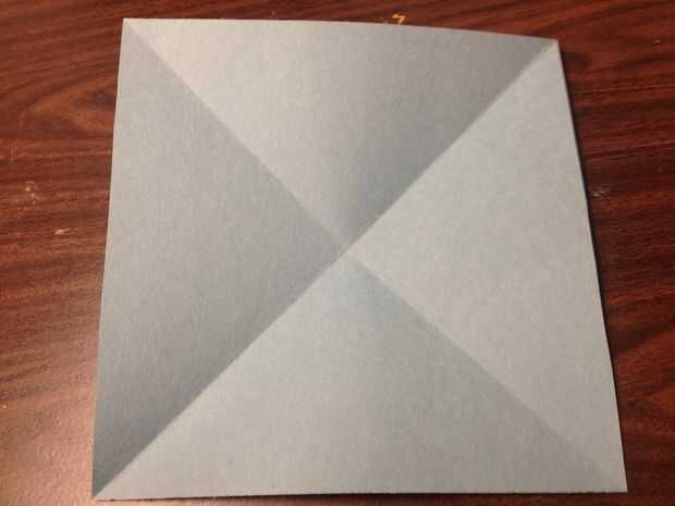 Doblar el cuadrado de papel de esquina a esquina en ambas direcciones, haciendo una "X". Arruga bien.