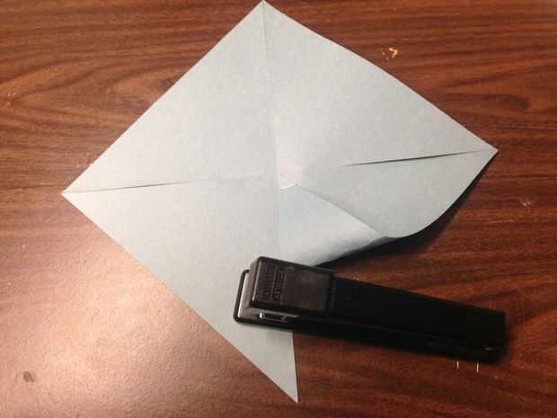 Doble cada otra aleta cortada al centro y grapa cerca del centro para garantizar.