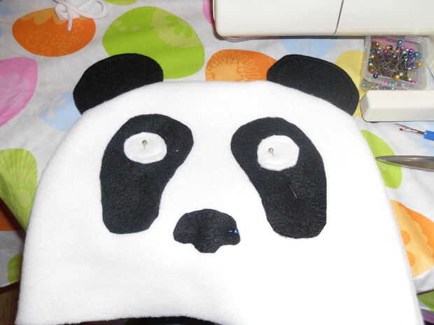 Girar a la derecha hacia fuera y perno de ojos y la nariz a la parte delantera del sombrero.