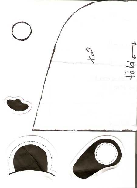 Sorteo patrón en papel (este es el que utilicé) orejas x4 parches contorno de ojos x2 círculos de color blanco para ojos x2 nariz x1 Formas de sombrero x2 Una tira negra de borde x1 (cerca de 4 pulgadas de ancho por 25 pulgadas fue lo que usé)