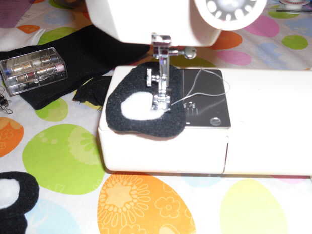 Una vez alineados. Coser 1/4 de pulgada o menos en el interior de las manchas blancas de los ojos.