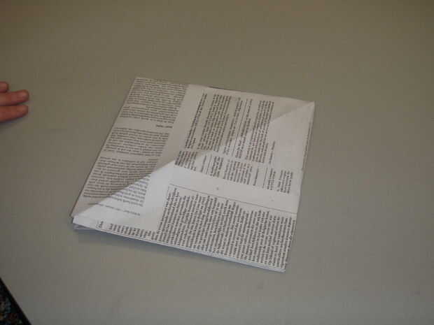 Usted puede tener éxito si usted sigue las indicaciones y mira las fotos!Para hacer un sombrero de papel necesitas lo siguiente:un periódicocintaalgo que pesan cony una superficie plana.Gracias y disfrutar de las instrucciones!En primer lugar, abra s