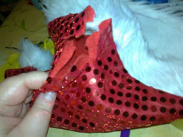 -Tomar vuelta hacia fuera y cubren la parte inferior media pulgada más o menos (el bit que está en contacto con el sombrero) en tela pegamento y luego vuelva a insertarla en la misma forma
