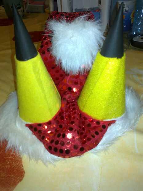 -Cortar una forma en el círculo más pequeño y empuje uno de los oídos hacia arriba a través de él desde el interior del sombrero