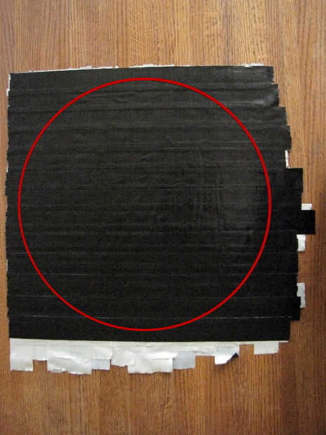 Dibuja un círculo con un diámetro de 18" en el centro de la hoja negra de la cinta del conducto.