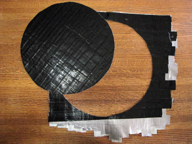 Usar un cuchillo o tijeras para cortar el círculo.  Deseche el desecho del exterior.  Ya no es necesario.  Dejar de lado el círculo de la cinta de conducto negro.