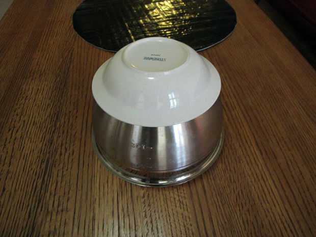 Encontrar algo más o menos la cabeza en forma y tamaño de la cabeza.  Usé dos tazones de fuente.  Asegúrese de que todo lo que utilizas es más grande que su cabeza o no encaja en el sombrero.  Esto se utiliza para formar la corona del sombrero.
