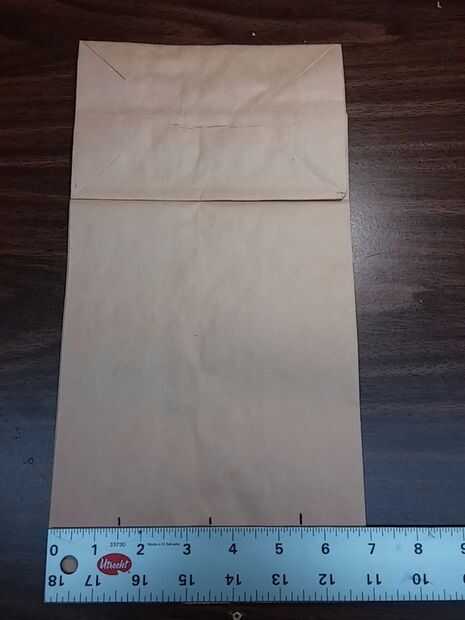 Usando la regla, haga una marca pequeña en el centro de la bolsa (3,5 pulgadas).