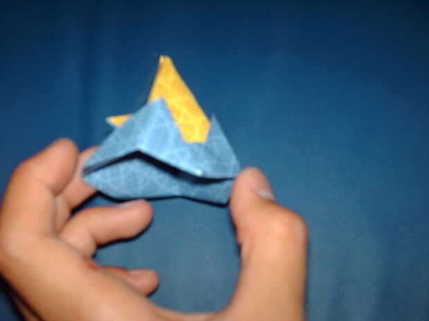 Ok deje empezar con una hoja de papel cuadrada de origami.Paso 1: doblar Empezar con un papel cuadrado en frente de usted.Doblar por la mitad a un triánguloPaso 2: doblar doblar el triángulo por la mitad y luego revelar.Paso 3: doblar imagen le ayuda