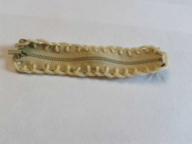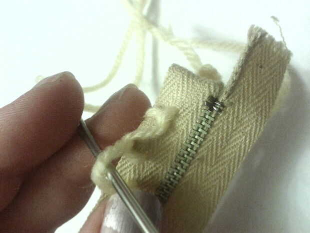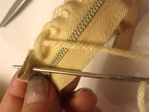 a continuación, llevar la aguja a través de la parte de tela de la cremallera otra vez, antes de traer el hilado completamente por traer la aguja por el bucle que acaba de hacer y tire.
