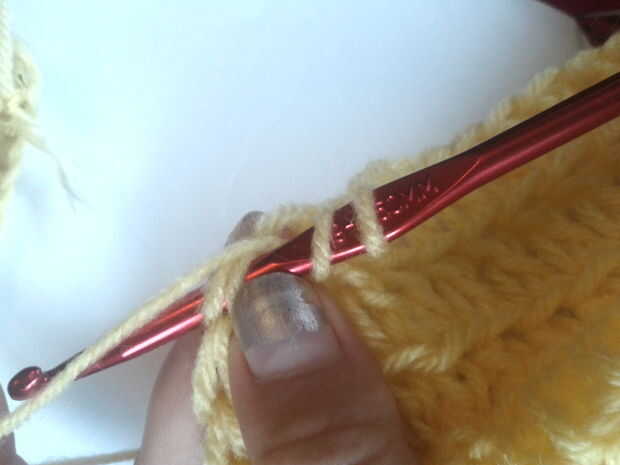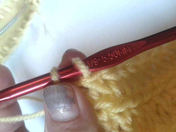 1DC en el siguiente n puntos. (n significa el número que tienes arriba. En mi caso significa n 22) entonces para el próximo n puntadas inicio apagado como lo haría con un dc, envuelva el hilo alrededor del gancho, poner el gancho en la puntada siguiente y sacar el hilo a través de. Envuelva el hilo alrededor del anzuelo y páselo a través de dos primeras puntadas en gancho. Ponga el gancho a través de la primera puntada en su cremallera, hilado encima y tire a través de todas las tres puntadas en gancho. 1DC en cada puntada para el resto de la fila.