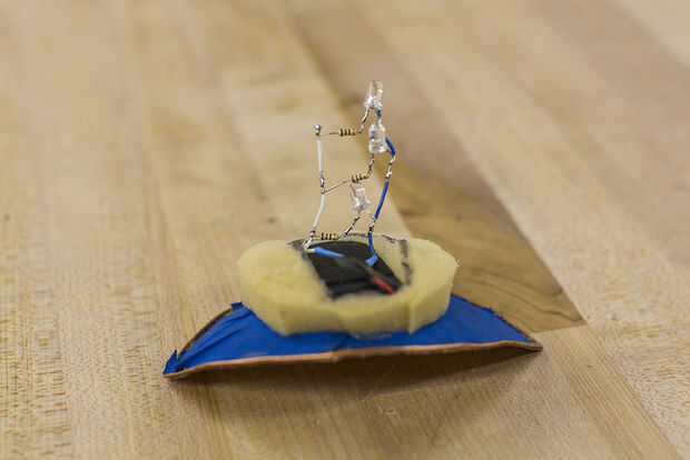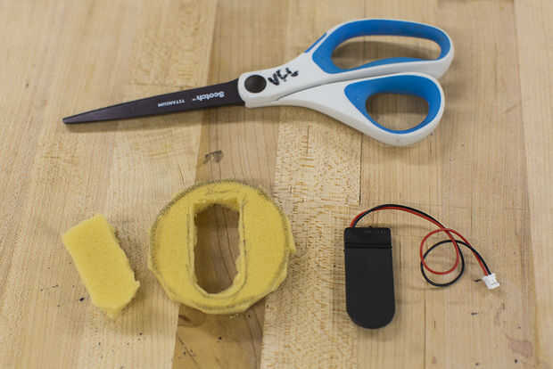 Cortar un espacio en la espuma para el paquete de baterías. Caliente pegar la espuma a tu base y la batería a la base.
