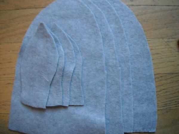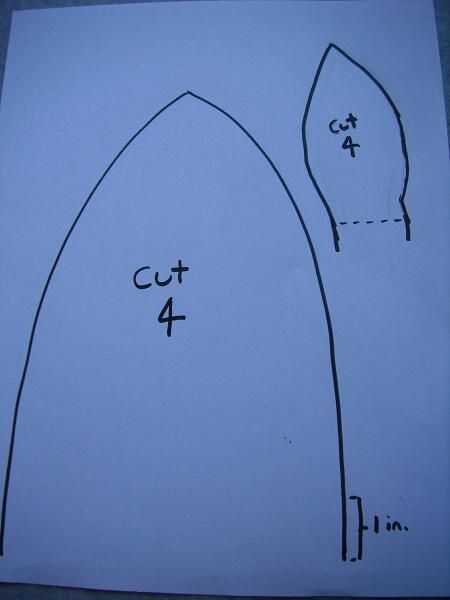 Necesitará cortar cuatro triangle-ish en forma de piezas para el sombrero y cuatro orejas. Mira el patrón que hice para ver lo que debe.