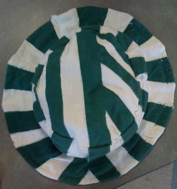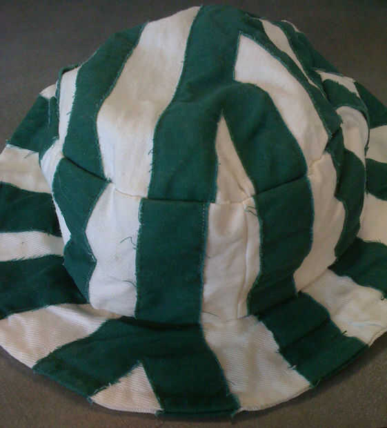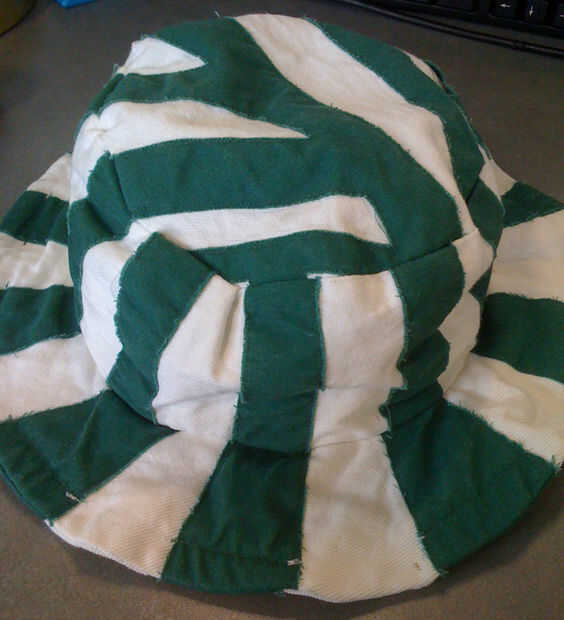 aquí es un patrón y las instrucciones para dos estilos de sombreros de ala ancha con coronas de seis piezas idénticas. Me gusta hacerlos con materiales recuperados. La naranja una solía ser dos camisas, y Brun que dos bolsos. Una vez que hayas realiz