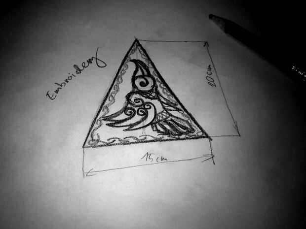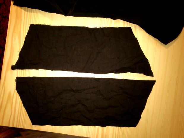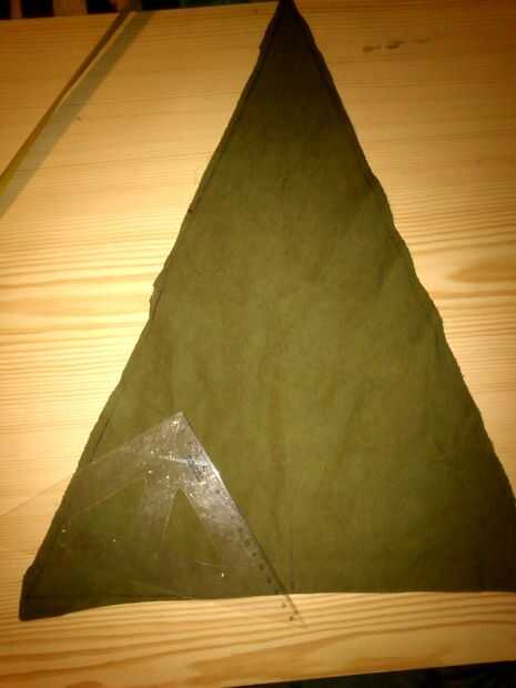 Después de corte dos triángulos de lana y una guarnición del lino.