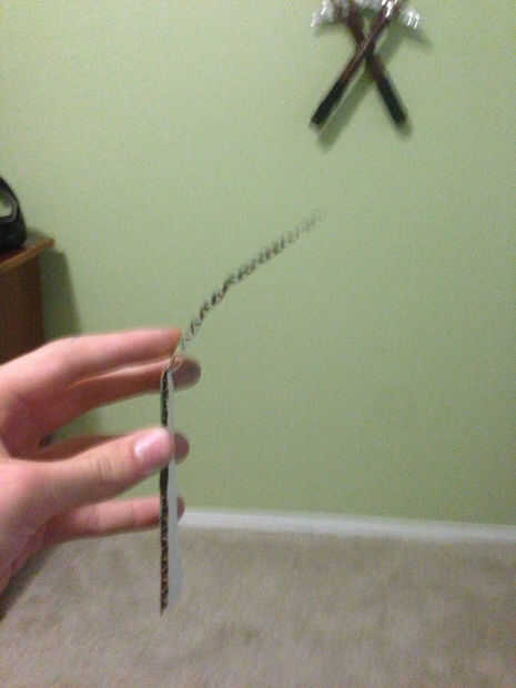 Las piezas triangulares como la imagen de arriba de la curva. Luego, con cinta adhesiva. Luego, doble hacia abajo la parte del rectángulo y con cinta adhesiva. Hacer esto hasta que se ve como un semicírculo de arriba. Encuentre la longitud de la curva y anótelo.