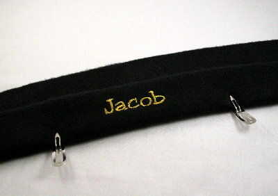 Vamos a empezar con el brazalete. Doble el pedazo más pequeño de paño grueso y suave para formar un manguito del tamaño que desee el brazalete acabado en el sombrero. Este paso es especialmente importante si usted está cosiendo un nombre para que tengas el nombre alineado correctamente; no tanto si no hay ningún nombre para alinear, pero todavía quiere un manguito de tamaño apropiado. Para hacer un puño, dobla por la mitad lateral y luego doblar de nuevo, para tener cuatro capas de paño grueso y suave. Fije el borde doblado.