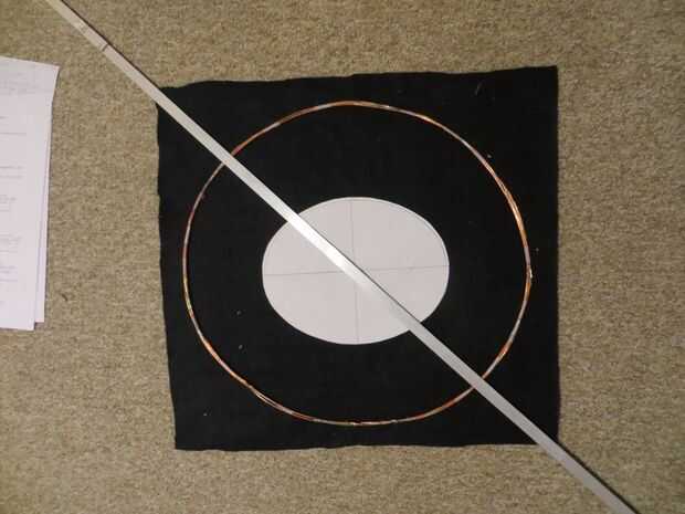 5. Centro de la elipse en el pedazo de tela que corta y corta un agujero del tamaño de la elipse.