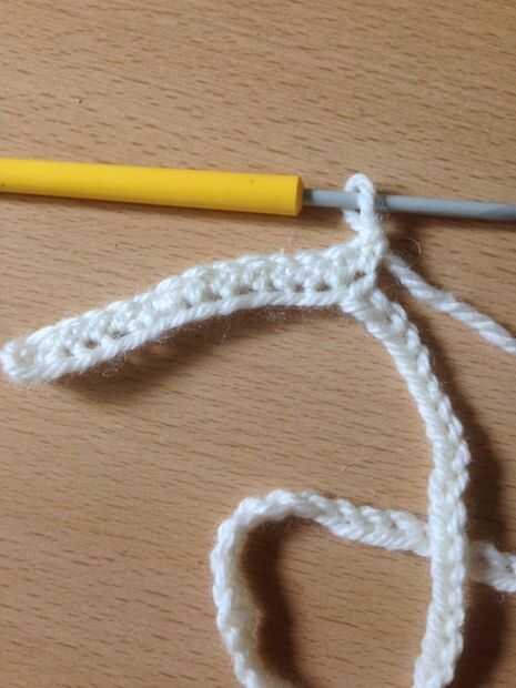 Paso 4 - hacer una cadena extra para dar vuelta y continuar con la segunda fila. (gire hacia usted)