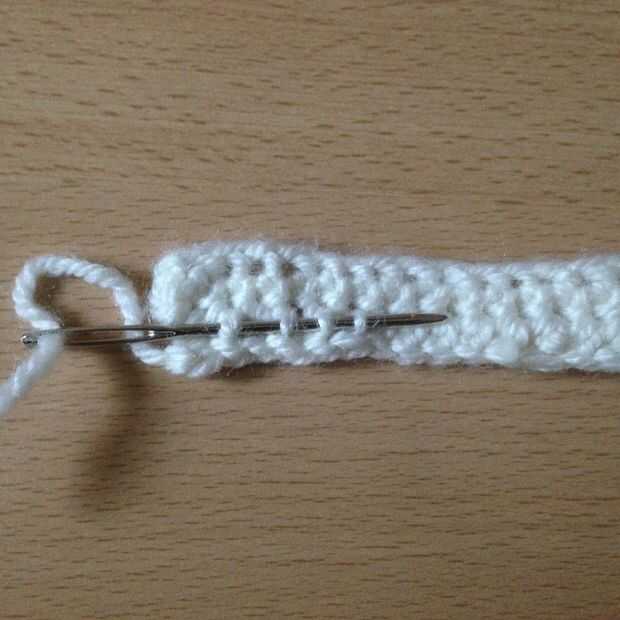 Paso 5-finalizar con un nudo para asegurar y coser en cola con una aguja de tapiz.
