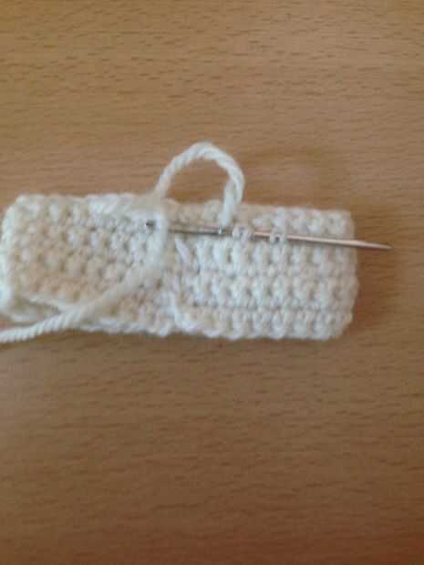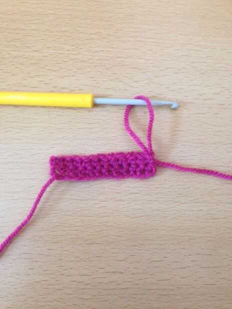 Una pequeña banda en contraste poco se hace con 10 puntadas de cadena y dos filas de punto bajo.