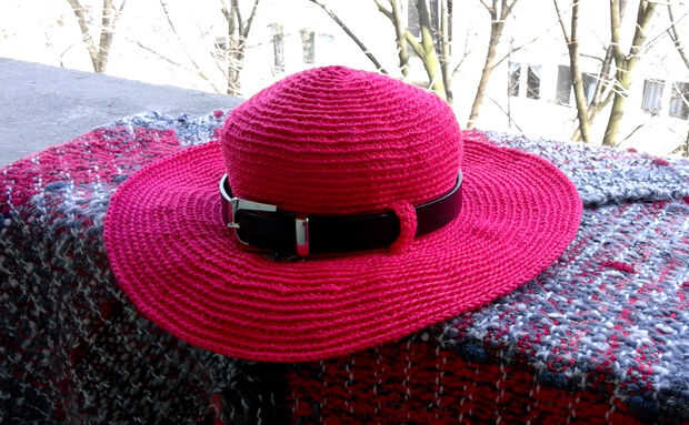 Este sombrero, de hilo grueso y gancho no. 3.5, debe ser muy firme y no necesita almidonado. Sin embargo, si el sombrero se convierte en algo suave, se puede endurecerlo con una mezcla de azúcar y agua. Mezclar 7 cucharadas de tbl de azúcar con 14 tbl cucharas de agua, revuelva bien para fundir todos los cristales de azúcar y vierte este líquido en una aspersión. Rocíe el sombrero (o solo el borde) con el líquido, aplane el borde con las manos y dejar sobre una superficie plana se seque por completo.