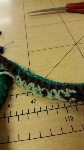 este vibrante gancho de ganchillo puede ser usado para medir la resistencia de un sensor elástico del ganchillo mientras se está realizando. Pueden medir continuidad y resistencia mientras que el sensor está siendo tejido en ganchillo. El motor de la