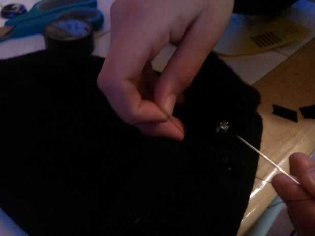 Después, coser los trozos en el lugar que usted necesita para mantener sólido (para mí, el interruptor debe ser cosido en su lugar) y luego coser el ala del sombrero cerrado otra vez.