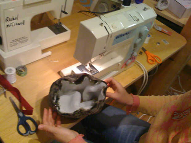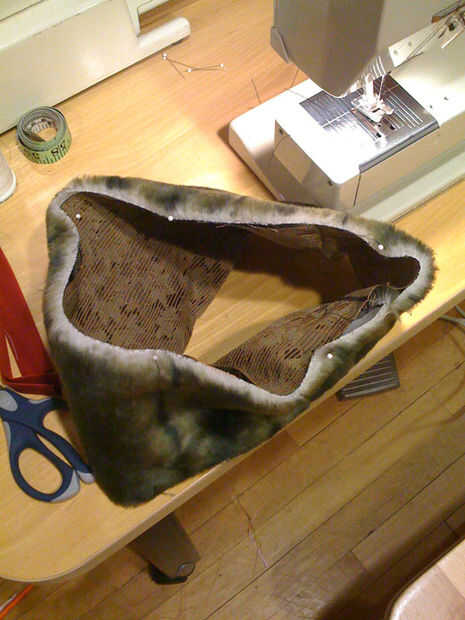 Gire a la uno derecha y colóquelo dentro del otro por lo que los lados del derecho juntos. Es ordenado pero no es esencial hacer coincidir las costuras. Si te gusta y coser por el borde largo del perno.