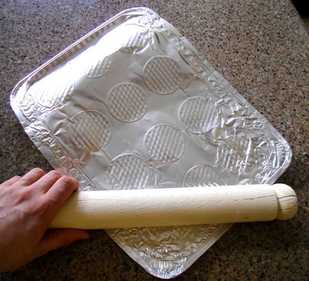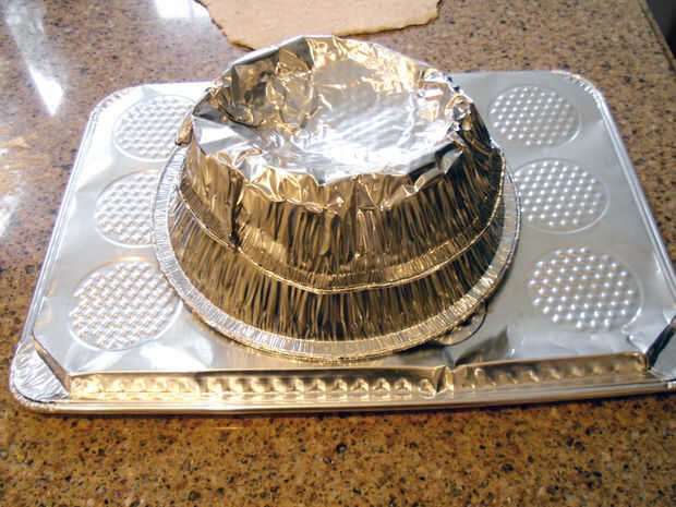 El borde fue creado usando una bandeja plana con una cinta de papel de aluminio colocado en el interior que la masa se envuelve (se muestra en el siguiente paso).