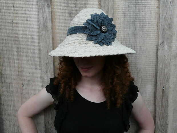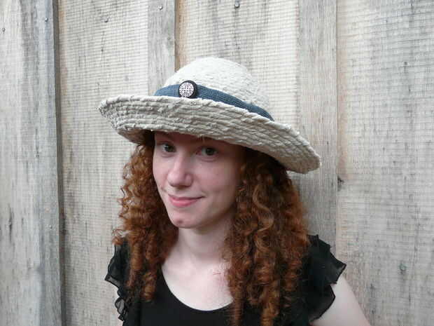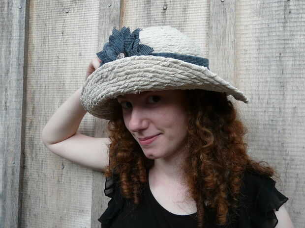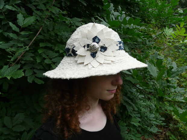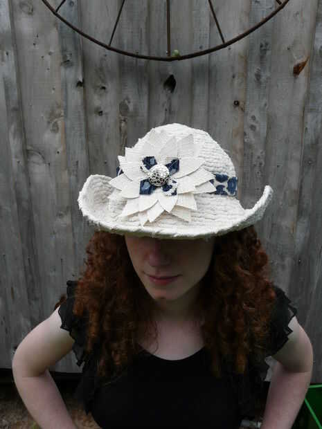 El sombrero resultante toma muchas formas. El borde es muy moldeable y mantiene la forma que usted lo doble en... casi como si tenía alambres en él. También tiene bandas intercambiables sombrero y flores de tela, por lo que el mismo sombrero puede coincidir con casi cualquier atuendo.