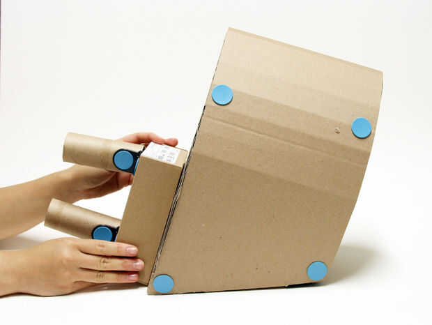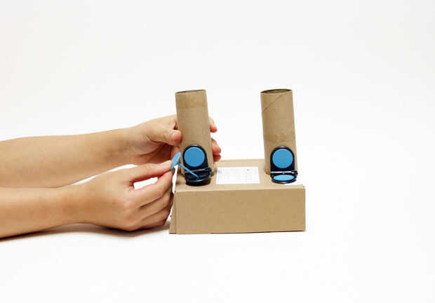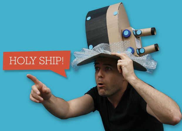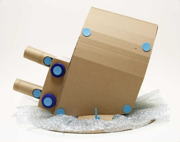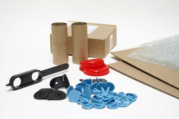 A nuestra nave de conmemoración, embalar algunas láminas de cartón plano, un par de tubos de papel, una pequeña caja, tapas de botellas, abrigo de burbuja y piezas de Makedo y está listo para zarpar, o fregadero.