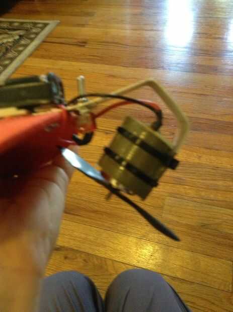 Utiliza un pequeño motor de una máquina de coser y consiguió algunos repuesto plástico andante una hélice pequeña