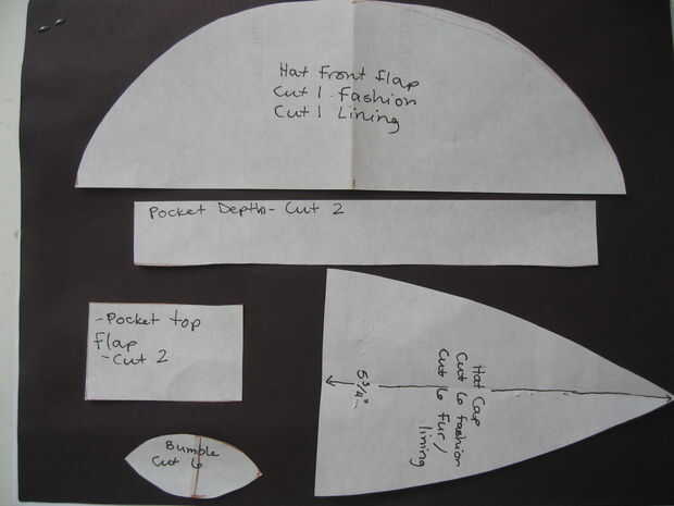 1 oreja de sombrero (corte en el doblez, para que tenga forma de "U" y una aleta para cada oído)