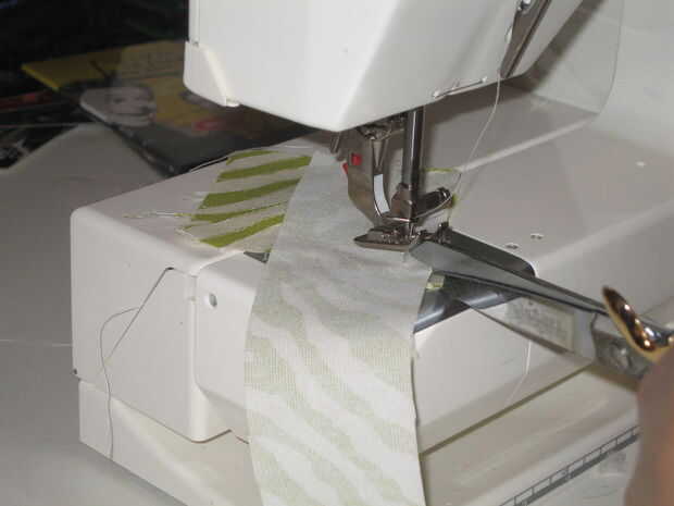 Después de esto, las tapas de los bolsillos (ahora incluyendo la parte superior de la profundidad del bolsillo) de dobladillo doblando la tela sobre 1/4" y 1/4" otra vez, suponiendo que usted está utilizando el margen de costura de 1/2"(imagen 2).