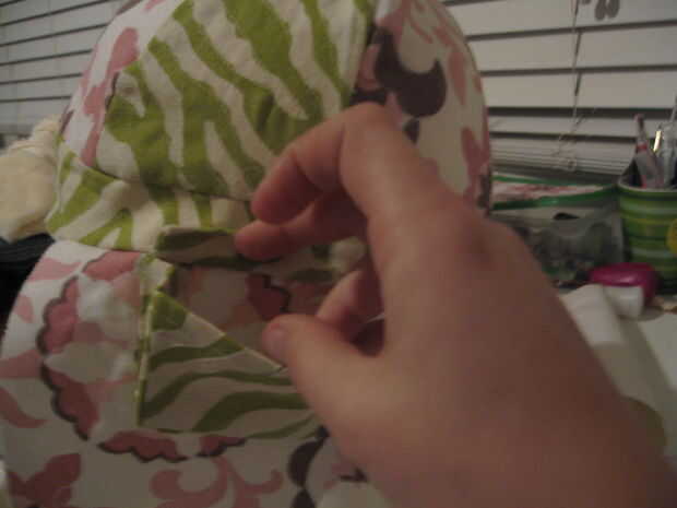 Nota: Si el aspecto de profundidad de bolsillo todo es confuso, usted podría también sólo presione la pieza frontal de bolsillo para que existen los bordes acabados y pespuntear esta pieza en el sombrero. Este es un aspecto más elegante y requiere menos tiempo.