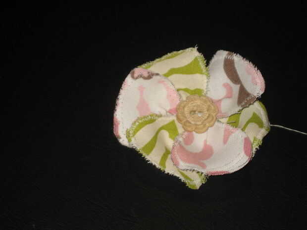A continuación, crear su flor que abarca cada pétalo con una corto y ancho zig zag puntada en el resplandor en el oscuro hilo. Luego, dobla cada pétalo en forma de V en la parte inferior para crear cierta profundidad y unirlas todas en el centro, creando un círculo de pétalos. Finalmente agregue un botón al centro de la flor y coser a su sombrero que tú quieras!