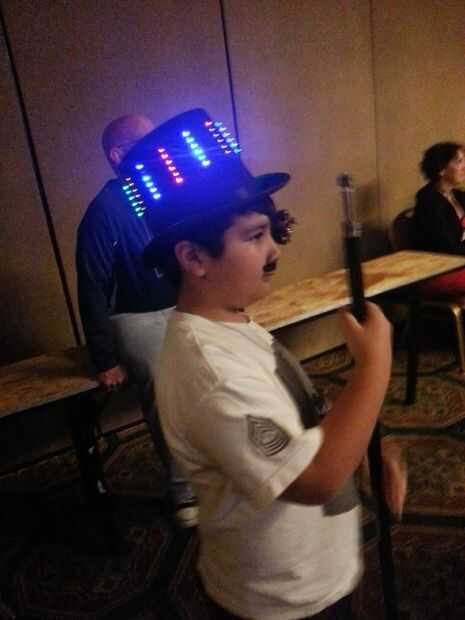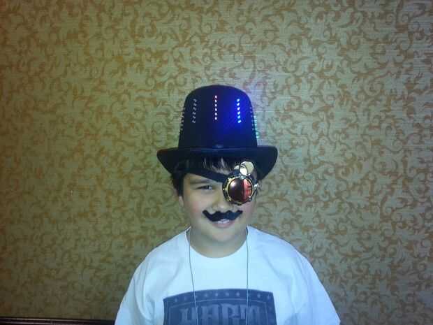 quería un sombrero que iluminó todo el borde como una de esas cosas de iluminación carpa de cine. Tomó las edades y edades, pero finalmente lo logró! Os adjunto también un pulsador, para que cuando lo empujas, rota el led más rápidamente. Sí la foto