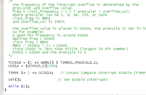 Cuando primero tienes el programa descargado en el ATtiny2313 y girar para arriba, era tan genial. El único problema era que el motor estaba girando a rápido para que el texto. Tendrás que entrar en el código y ajustar la parte que dice "OCR1A = (uint16_t) 1000;" y ajuste la 1000 a lo que mejor se adapte tu motor y gustos. Tuve que ajustar mi a 1200 para hacerlo girar lentamente.