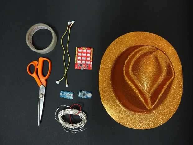 Aquí es un divertido proyecto usando una cadena de LED con alimentación a batería, un dólar tienda sombrero plástico y malla de tubos de una tienda de artesanías.Primero hizo agujeros en la parte superior del sombrero para que las luces led empujar h